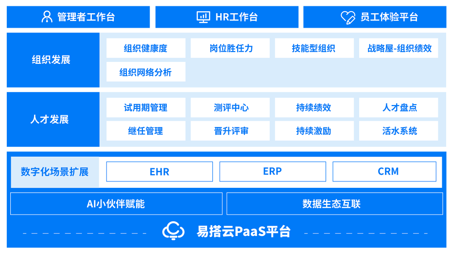 人事云是云生旗下人效数字化产品,凝聚团队10年以上的深厚行业积淀和实战精华,凭借PaaS技术底座,以战略为导向、贯穿组织和人才发展全链条,为企业构建数字化、智能化、敏捷高效的人效管理闭环,助力企业有效应对市场波动、技术革新、竞争格局等变化,确保企业在激烈竞争中保持战略定力,持续提升核心竞争力,实现稳健发展。
